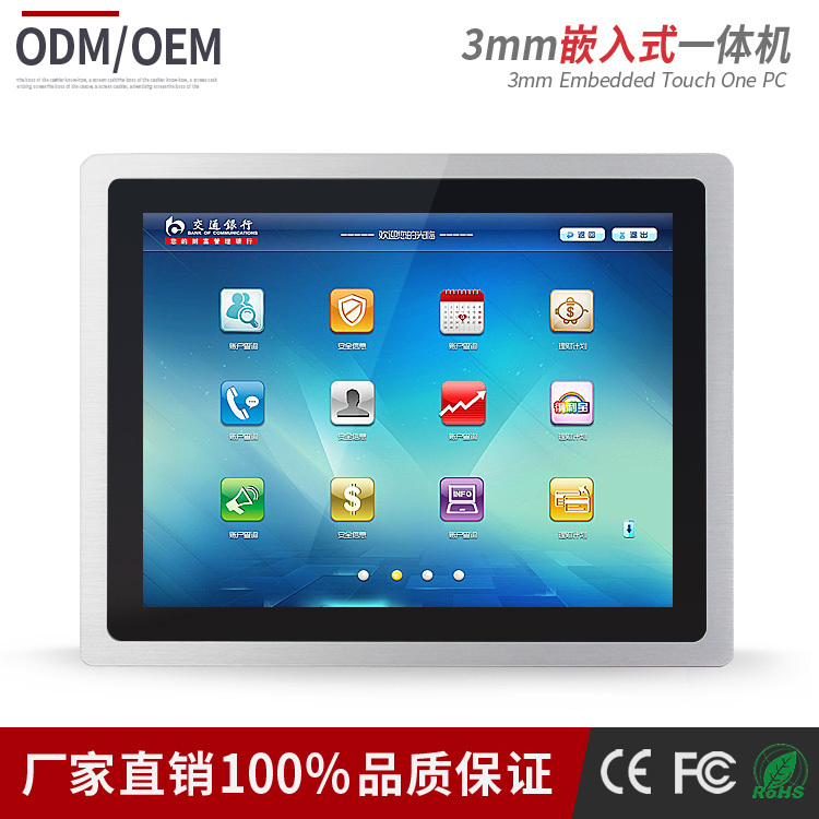 ? ? ? 智能工業(yè)平板一體機(jī)外殼采用鋁合金材料,鑄模沖壓,陽(yáng)極氧化,拉絲工藝制作而成,致使面框厚度達(dá)到3mm,面板無縫隙純平顯示設(shè)計(jì)達(dá)到IP65要求;內(nèi)部集成X8架構(gòu)Intel Baytrail平臺(tái)工控主板(自主開發(fā))、固態(tài)硬盤內(nèi)存、工業(yè)高清液晶屏及十點(diǎn)電容觸摸屏等主要部件,它具有精美輕巧,防塵防水,堅(jiān)固耐用、安全穩(wěn)定,操作方便等特點(diǎn)。