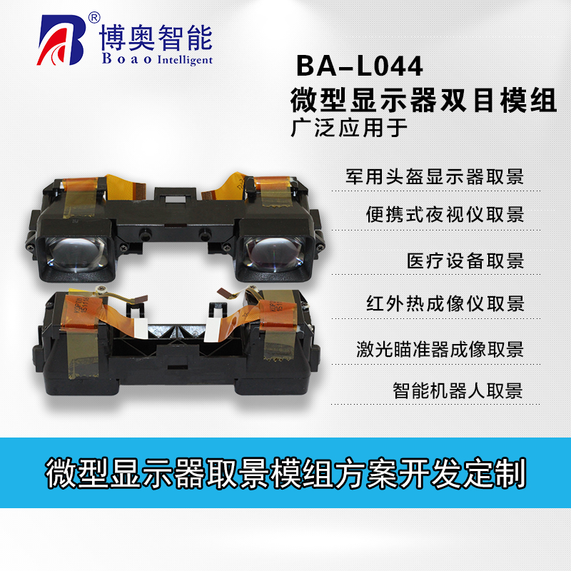 ? ? ? 該顯示微型顯示器模組為減少客戶(hù)開(kāi)發(fā)周期,降低客戶(hù)開(kāi)發(fā)楊本應(yīng)運(yùn)而生,模組含2個(gè)SVGA像素的微型顯示芯片、光源系統(tǒng)、高性能光學(xué)引擎、以及圖像驅(qū)動(dòng)控制電路。該顯示模組可以虛擬出相當(dāng)于2米遠(yuǎn)48英寸的畫(huà)面,圖像清晰800*600像素,體積小巧,可以方便地應(yīng)用到客戶(hù)的產(chǎn)品開(kāi)發(fā)設(shè)計(jì)中,該模組主要設(shè)計(jì)應(yīng)用到:軍用頭盔顯示器,軍用顯示器套件、便攜式夜視儀、醫(yī)療設(shè)備取景、紅外熱成像儀取景,激光瞄準(zhǔn)器成像、單兵夜視系統(tǒng)、游戲頭盔、智能機(jī)器人取景、計(jì)算機(jī)成像、遠(yuǎn)程教育、FPV眼鏡、AV/VR眼鏡等。