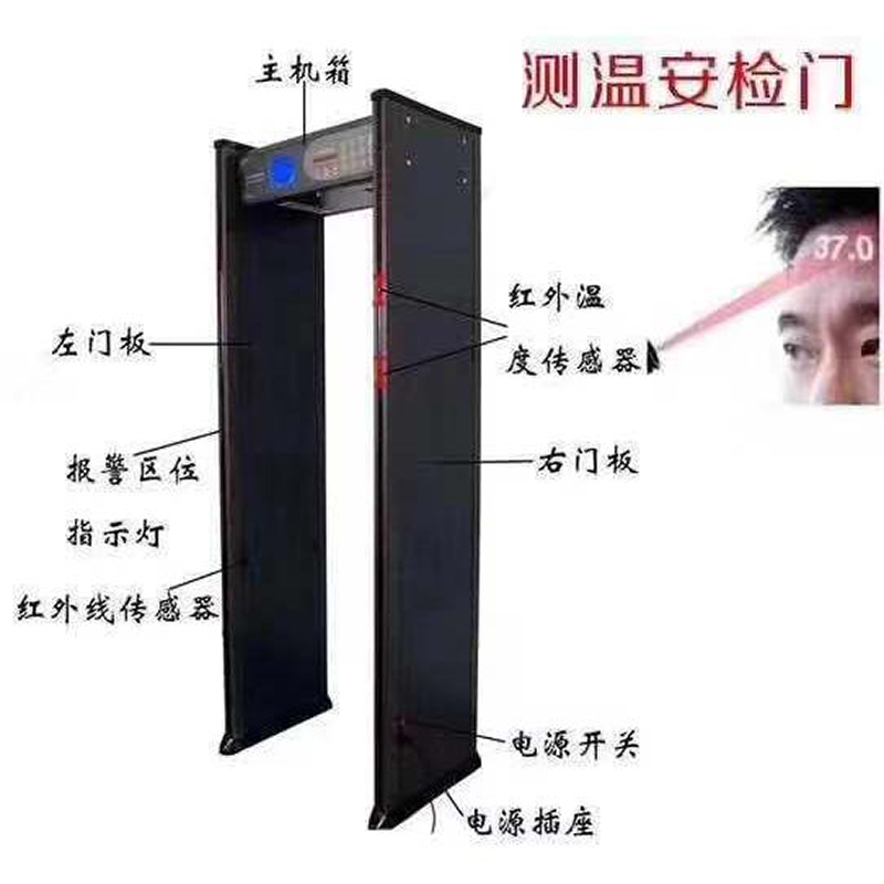 聲光報(bào)警,音調(diào)快慢可區(qū)分金屬物大小,多種報(bào)警音量模式適用于不同場(chǎng)合的選擇,通過門柱左右超亮LED報(bào)警燈可準(zhǔn)確顯示人體相應(yīng)高度藏匿的違禁物品。測(cè)溫報(bào)警:真人發(fā)音報(bào)警,提示體溫異