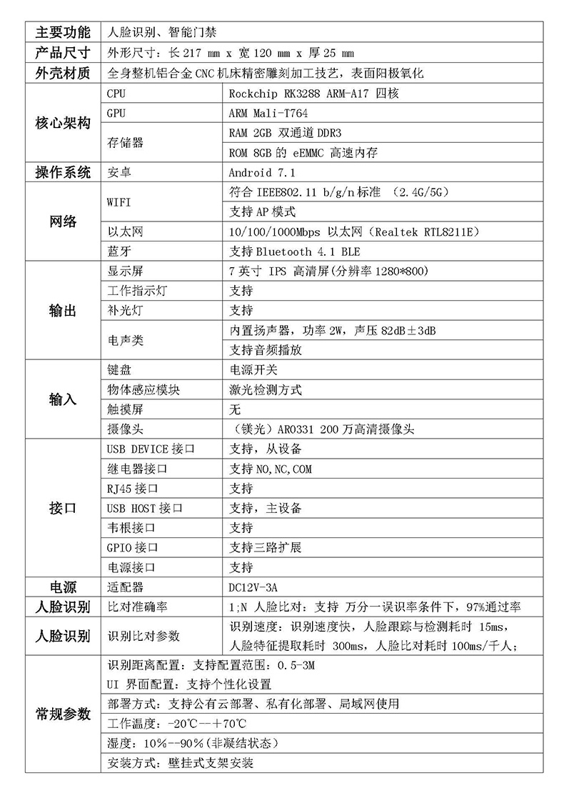 ·      算法品牌:曠視,集成其算法核心引擎開發(fā)的人臉識別APP(可選配置)
