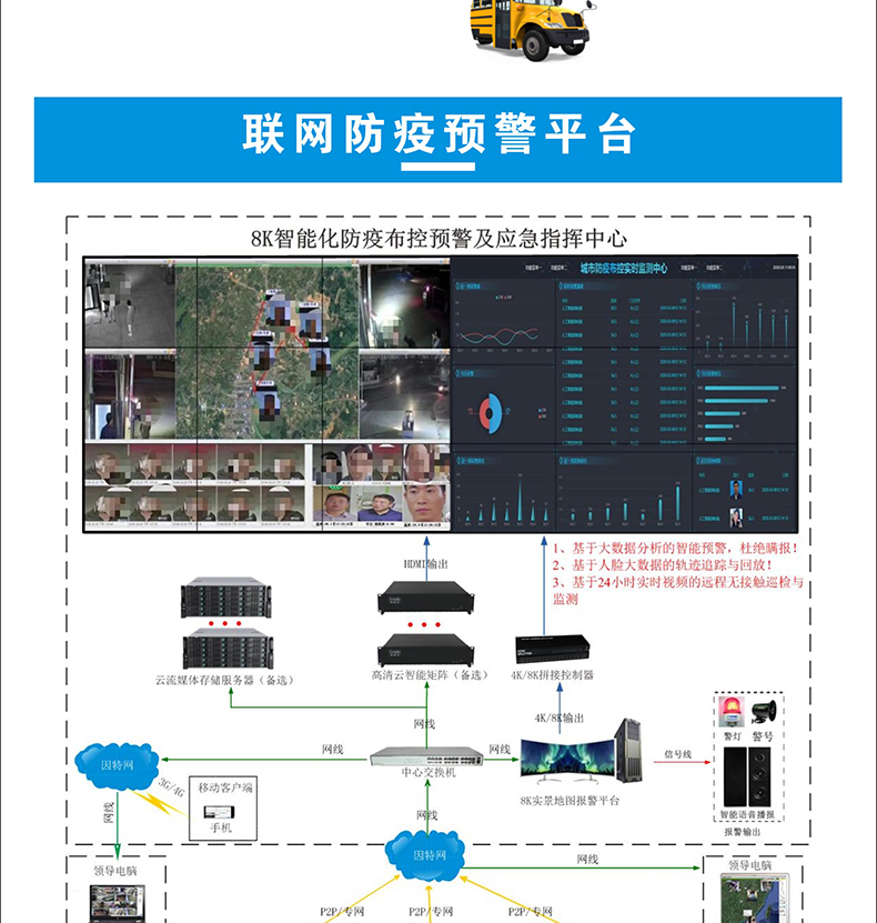支持有線網(wǎng)絡(luò)/WIFI/4G聯(lián)網(wǎng)到防疫指揮中心平臺(tái)及第三方平臺(tái);