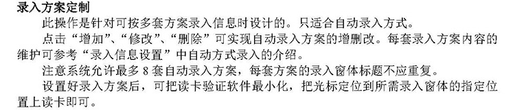 注意系統(tǒng)允許最多8套自動錄入方案,每套方案的錄入窗體標(biāo)題不應(yīng)重復(fù)。