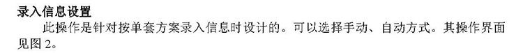 此操作是針對按單套方案錄入信息時設(shè)計的??梢赃x擇手動、自動方式。其操作界面見圖2。