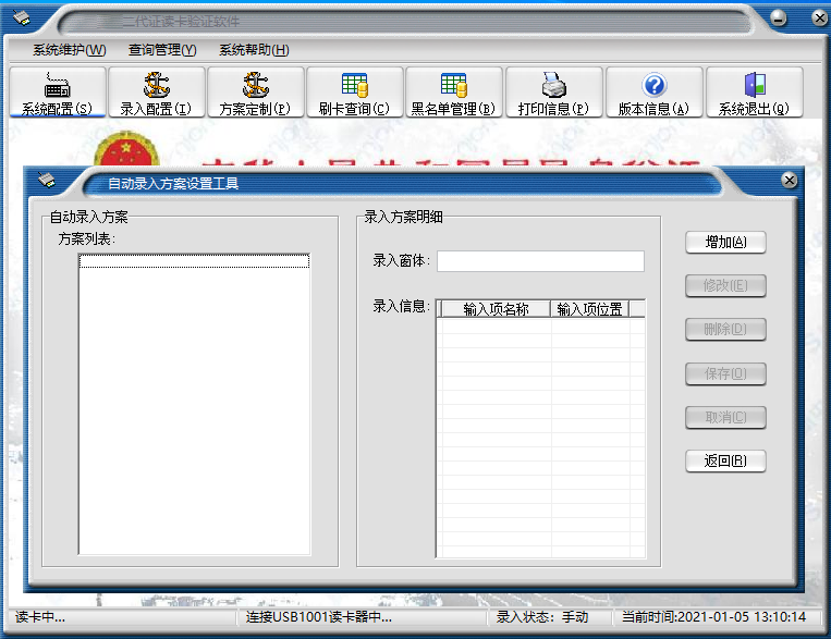 所謂自動錄入就是讀取二代證信息時,在信息顯示的同時,自動把方案所定義的信息錄入到相關(guān)應(yīng)用程序的指定窗體中。