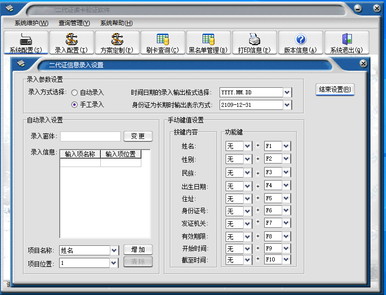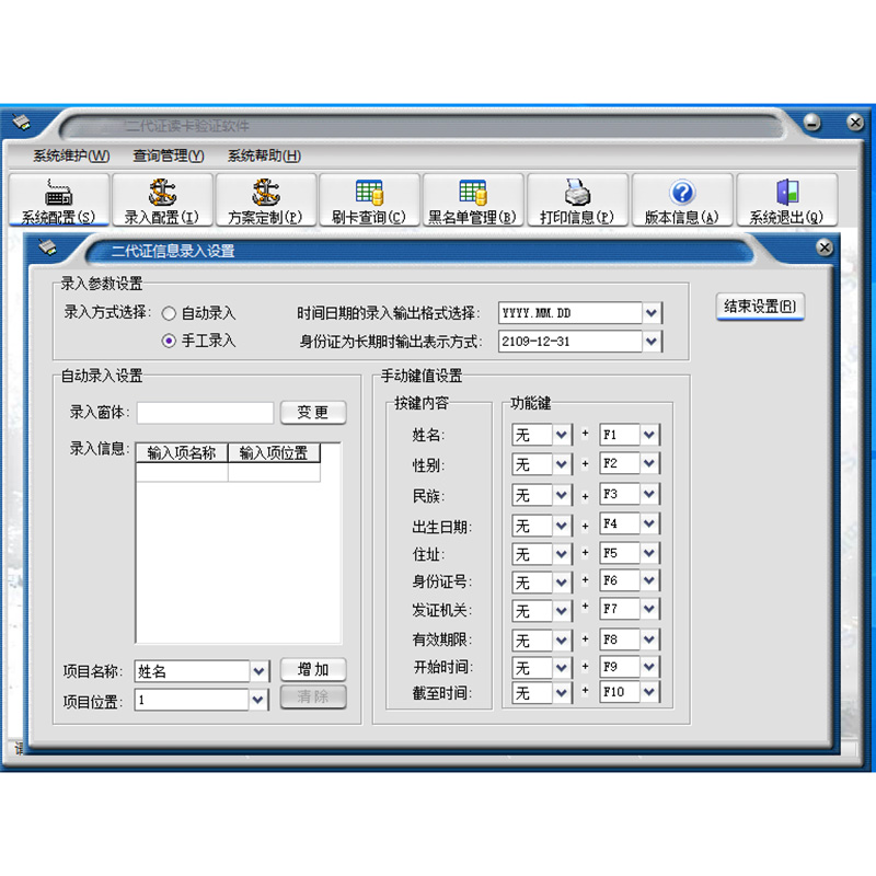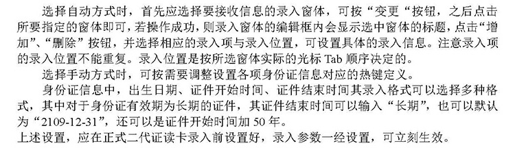 所謂手動錄入就是讀取二代證信息后,可按在相關(guān)應(yīng)用程序的窗體中按預(yù)先定義的熱鍵通過鍵盤錄入所設(shè)置的信息。