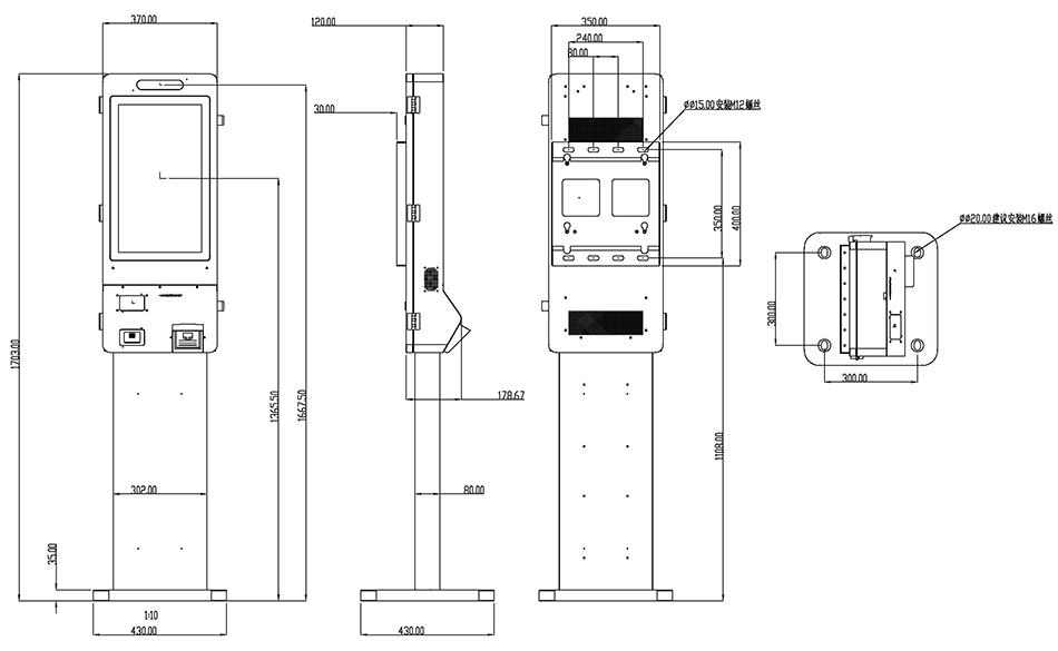 4.3內(nèi)部結(jié)構(gòu)按要求設(shè)計(jì)進(jìn)行加強(qiáng)筋加固,整機(jī)結(jié)構(gòu)牢固性可抗12級(jí)臺(tái)風(fēng),機(jī)器材質(zhì)采用冷軋板,噴漆工藝采用雙層噴戶外粉,外觀采用新穎設(shè)計(jì),可定制外觀,機(jī)器固定采用壁掛和落地式二用安裝方式,分別采取前開門和后開門進(jìn)行維護(hù)設(shè)計(jì)。