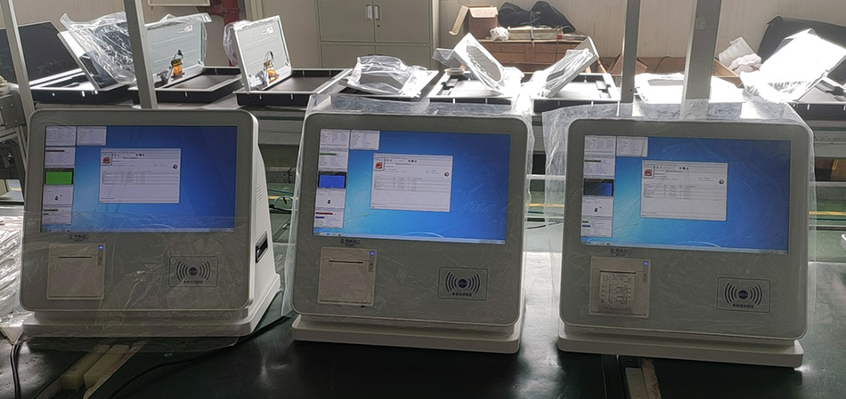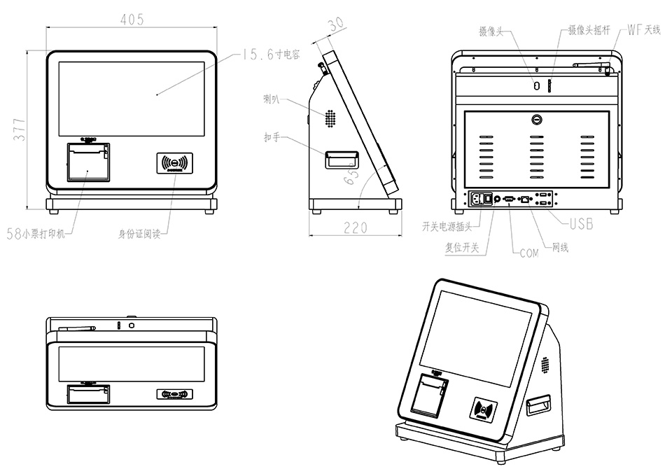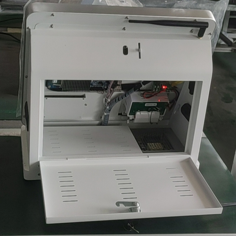 15.6寸臺式多功能一體機可應(yīng)用到學(xué)校、機關(guān)、企業(yè)、工廠、醫(yī)院等場所門衛(wèi)大廳做訪客登記系統(tǒng)、社保查詢終端,產(chǎn)品外殼采用鈑金,表面烤漆工藝,設(shè)備集成15.6觸顯一體屏,身份證閱讀器、IC卡讀寫器、熱敏打印機、條碼掃描儀、社保讀卡器、攝像頭等模塊;可安裝WIN系統(tǒng)和安卓系統(tǒng),從而方便了軟件系統(tǒng)集成商開發(fā)應(yīng)用,同時支持定制;包括外觀結(jié)構(gòu)功能定制。