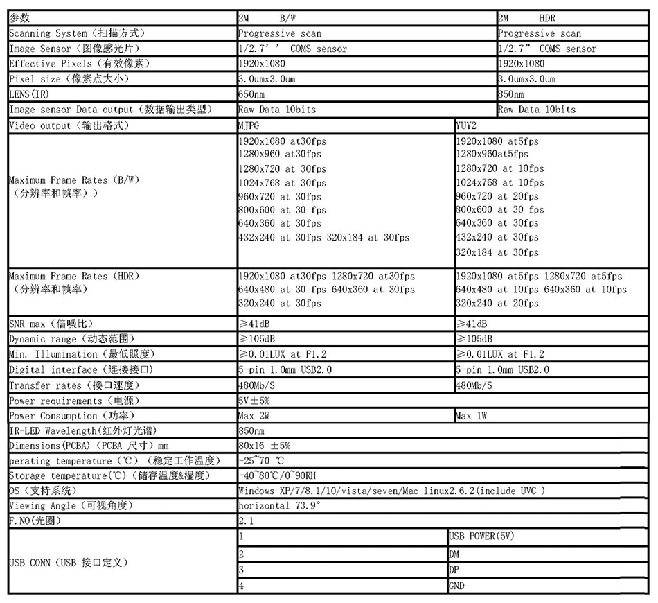 寬動態(tài)雙目攝像頭是一款集可見光、近紅外人臉采集于一體,擁有200W+200W 像素,集成了加密芯片的一款高性能人臉識別模組??蓪崿F(xiàn)人臉模板采集、人臉比對等功能。支持標準的USB 通訊方式,體積小巧,主板與近紅外補光燈板一體化設計,使它能靈活嵌入至各類終端設備,支持 Windows、Android、Linux 系統(tǒng)二次開發(fā)集成;同時我公司面向客戶需求定制開發(fā)各種設備使用的攝像頭。