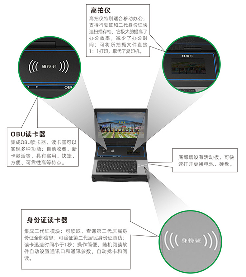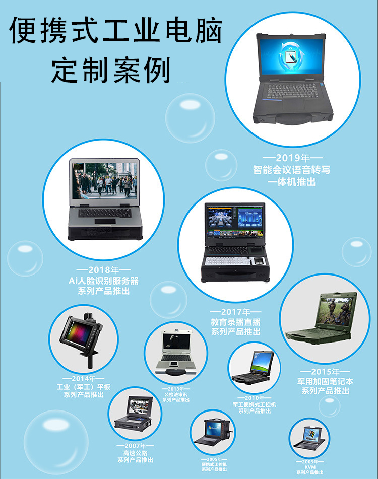 便攜式工業(yè)電腦具有性能穩(wěn)定,集成高,設(shè)備操作簡單;機(jī)身采用鋁合金材質(zhì),表面硬陽極氧化處理;全方位的防震動橡膠墊和機(jī)箱內(nèi)部結(jié)構(gòu)之間的防震技術(shù),使便攜式工業(yè)電腦具有極強(qiáng)的抗震性能,能夠在較惡劣的環(huán)境下滿足客戶的各種程度的測試和工作需求。博奧智能可根據(jù)客戶需求定制開發(fā)各種非標(biāo)便攜式筆記本電腦,定制包括功能、外觀、配置等服務(wù)。