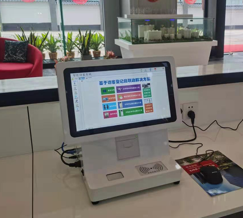 訪客機管理系統(tǒng)主要針對來訪人員進行信息化登記,相比傳統(tǒng)手工登記提高了工作效率,同時快將訪客信息以電子化形式保存,方便日后查詢,訪客機采用鈑金烤漆工藝外殼,集成15.6寸觸摸一體屏和11.6寸顯示屏,身份證閱讀器、打印機、高清攝像頭、條碼掃描等模塊 。