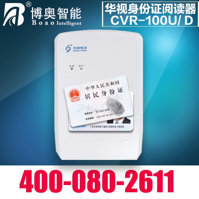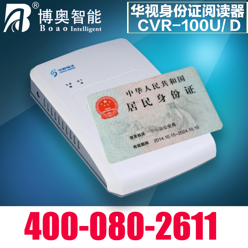 ? ? ? ?華視CVR-100U/D身份證閱讀器可應(yīng)用于公安,民政,郵局,證券,銀行、交通、通訊、景區(qū)、酒店、網(wǎng)吧等場(chǎng)所及行業(yè)進(jìn)行實(shí)名登記及身份識(shí)別核查。