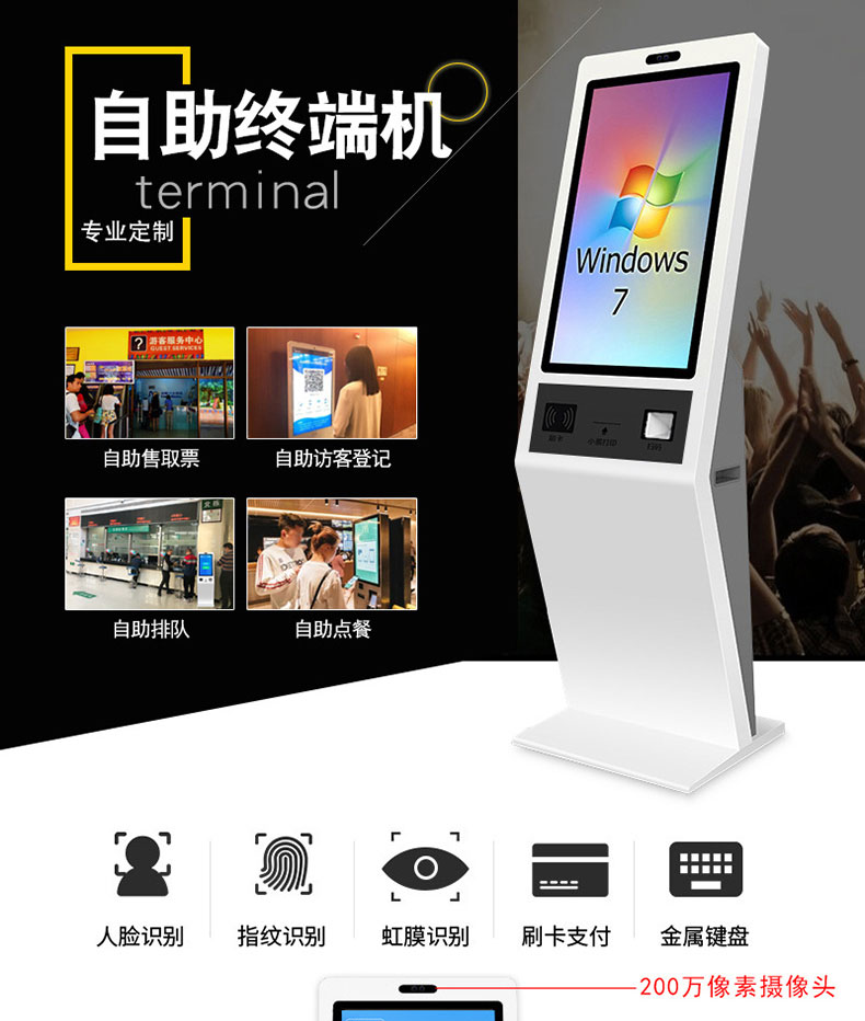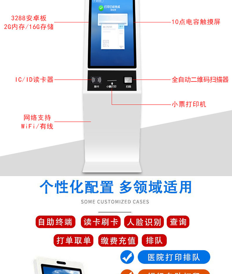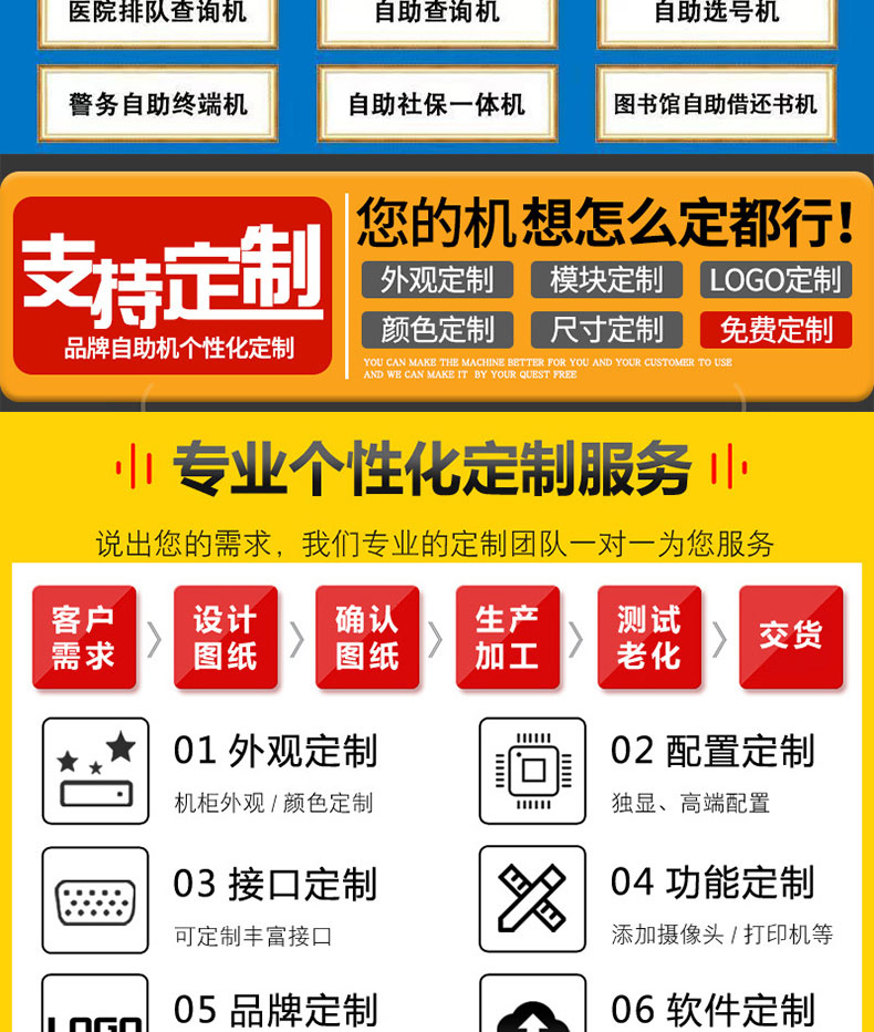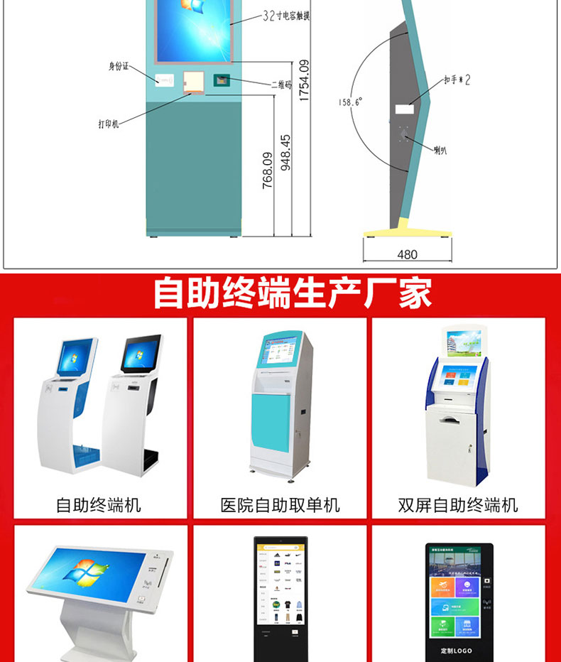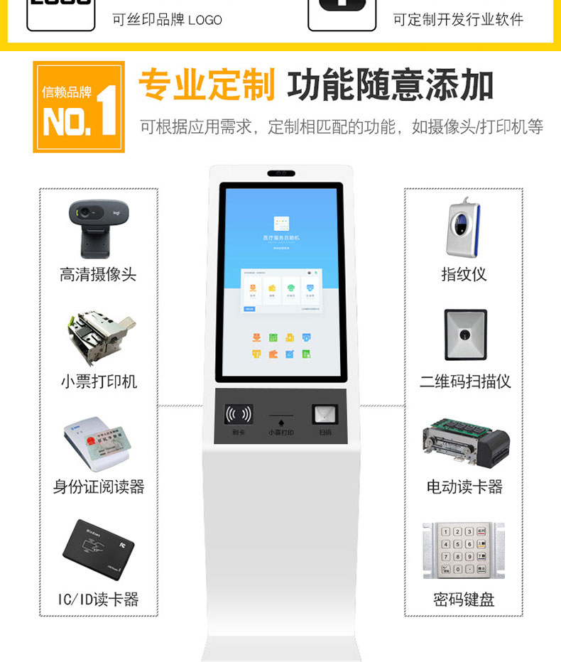 自助終端機(jī)定制:定制各種場景各種款式非標(biāo)終端機(jī);例如訪客機(jī)、景區(qū)自助取票機(jī)、醫(yī)院繳費(fèi)查詢機(jī)、醫(yī)院自助取單機(jī)、社保查詢機(jī)、室內(nèi)外廣告機(jī)、排隊(duì)叫號機(jī)、工控一體機(jī)、電力繳費(fèi)查詢機(jī)、圖書自助銷售機(jī)、便攜式計(jì)算機(jī)、酒店自助入住機(jī)、自助收銀機(jī)等終端。