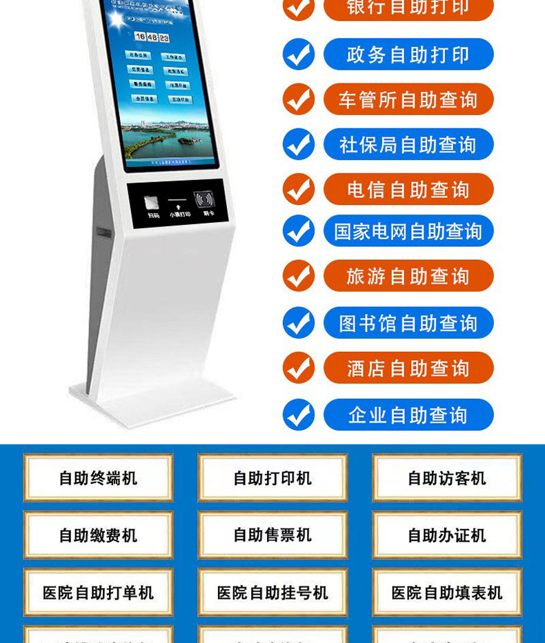 政務(wù)社保電信酒店取單繳費(fèi)打印多功能智能自助終端一體機(jī)應(yīng)用系統(tǒng)軟件定制開發(fā)