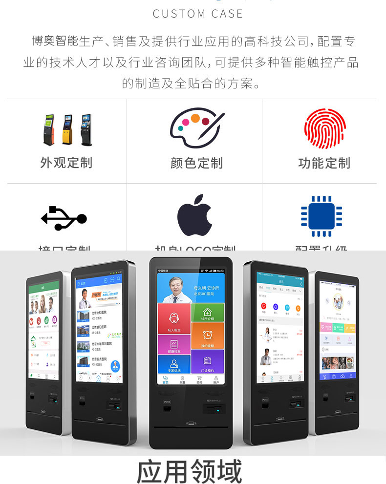 深圳市博奧智能科技有限公司專業(yè)提供自助終端機(jī)、觸摸查詢一體機(jī)、廣告機(jī)、液晶顯示器等產(chǎn)品的硬件、軟件研發(fā)與設(shè)計加工OEM/ODM等一站式服務(wù);我們一直秉承以產(chǎn)品質(zhì)量為核心、客戶至上、服務(wù)共贏為宗旨,為金融、醫(yī)療、教育、人工智能、政府工程項目、智慧城市、軌道交通、商業(yè)自助服務(wù)、廣告?zhèn)髅降刃袠I(yè)提供質(zhì)量過硬的產(chǎn)品和優(yōu)質(zhì)的服務(wù)。