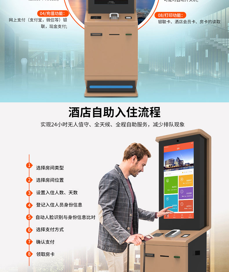 落地立式觸摸一體機證件登記人臉識別酒店自助入住智能終端系統(tǒng)軟件開發(fā)