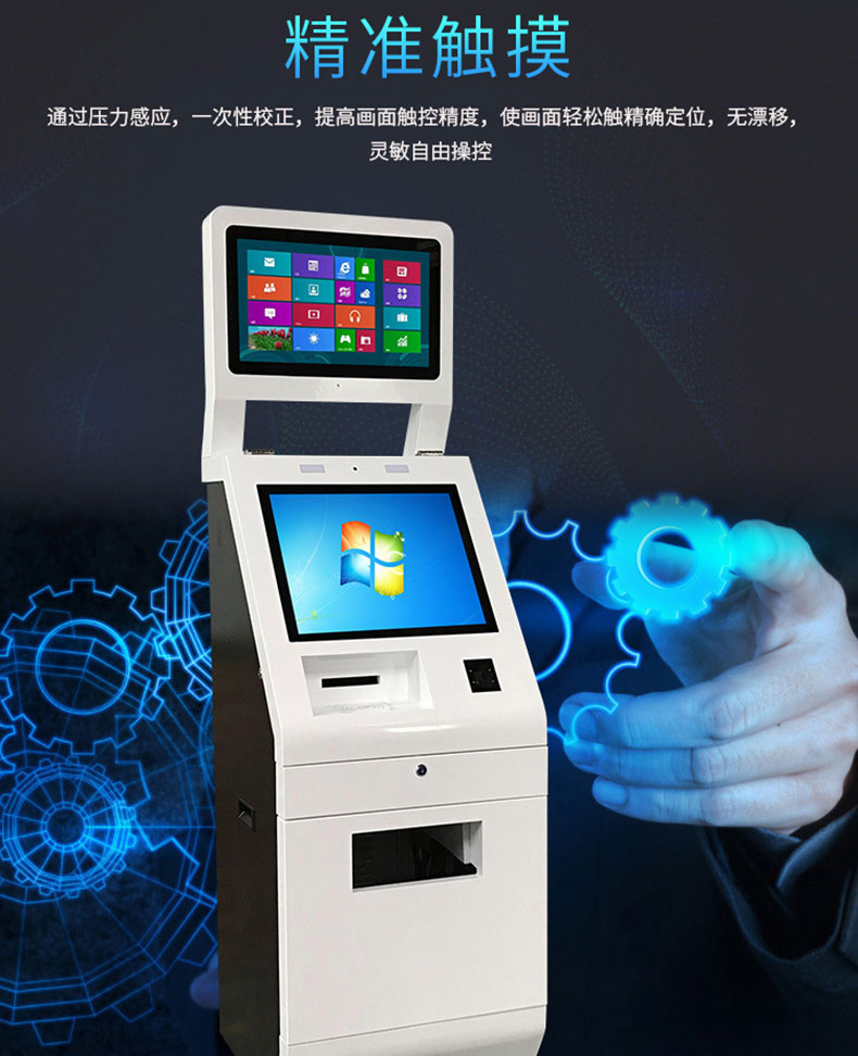 辦事大廳雙屏觸摸一體機定制人臉識別發(fā)卡打印讀卡廣告自助終端系統(tǒng)軟件開發(fā)