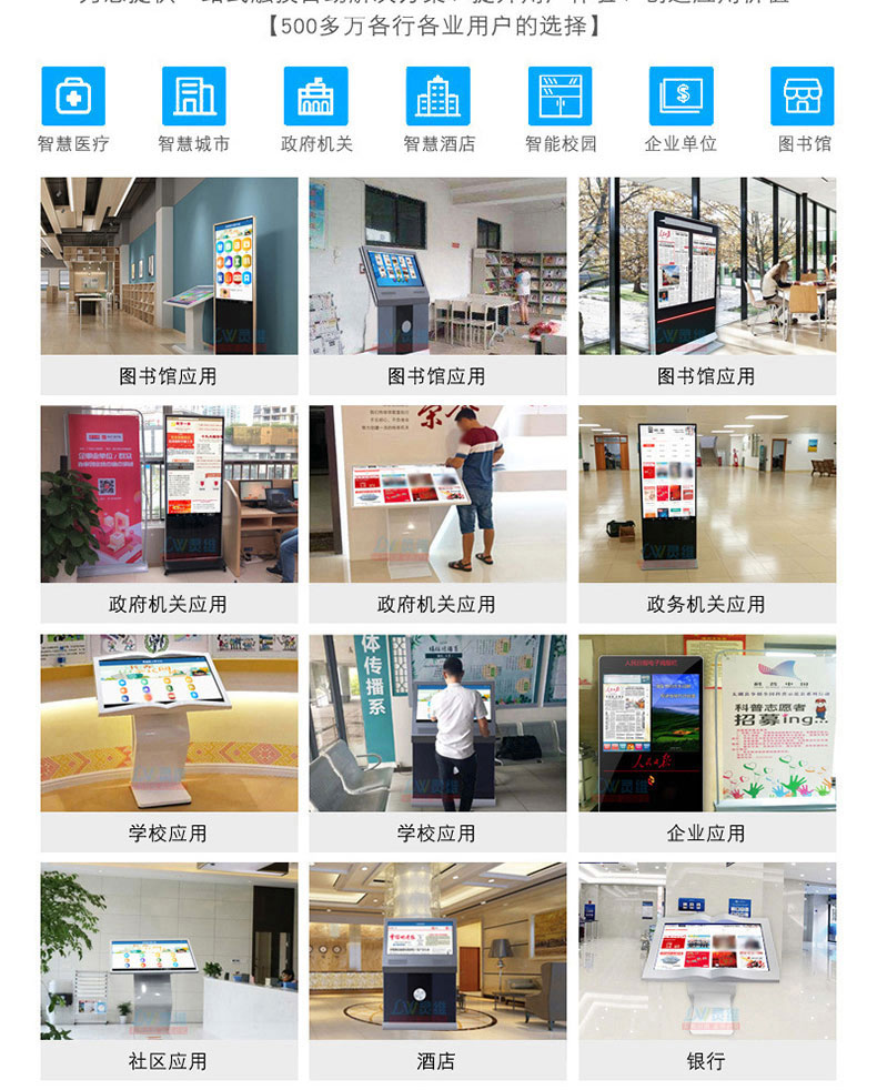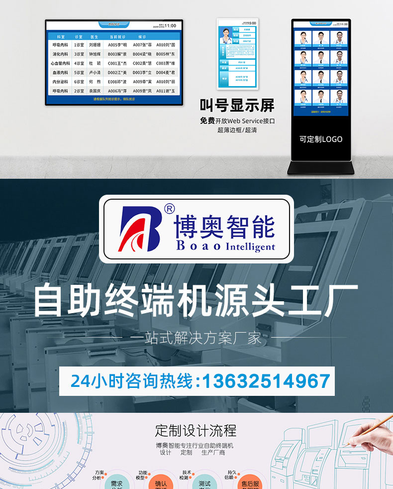 自助終端機定制:定制各種場景各種款式非標(biāo)終端機;例如訪客機、景區(qū)自助取票機、醫(yī)院繳費查詢機、醫(yī)院自助取單機、社保查詢機、室內(nèi)外廣告機、排隊叫號機、工控一體機、電力繳費查詢機、圖書自助銷售機、便攜式計算機、酒店自助入住機、自助收銀機等終端。