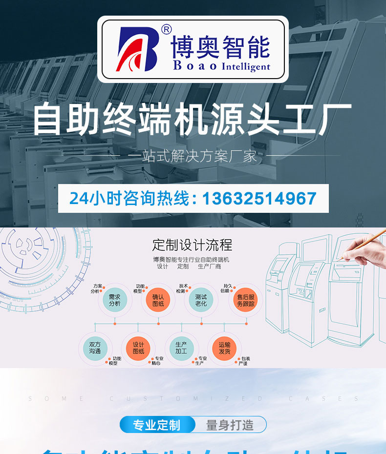 深圳市博奧智能科技有限公司專業(yè)提供自助終端機(jī)、觸摸查詢一體機(jī)、廣告機(jī)、液晶顯示器等產(chǎn)品的硬件、軟件研發(fā)與設(shè)計(jì)加工OEM/ODM等一站式服務(wù);我們一直秉承以產(chǎn)品質(zhì)量為核心、客戶至上、服務(wù)共贏為宗旨,為金融、醫(yī)療、教育、人工智能、政府工程項(xiàng)目、智慧城市、軌道交通、商業(yè)自助服務(wù)、廣告?zhèn)髅降刃袠I(yè)提供質(zhì)量過硬的產(chǎn)品和優(yōu)質(zhì)的服務(wù)。