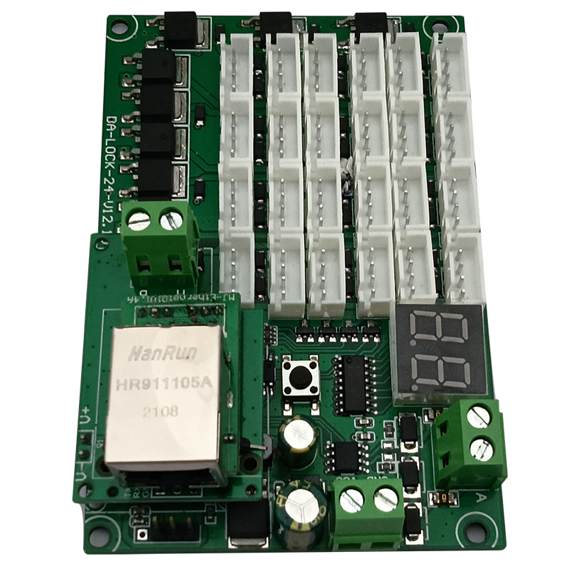 智能電子柜RJ45網(wǎng)口TP/IP協(xié)議485通信級(jí)聯(lián)24路鎖控板軟件APP開發(fā)PCBA方案定制