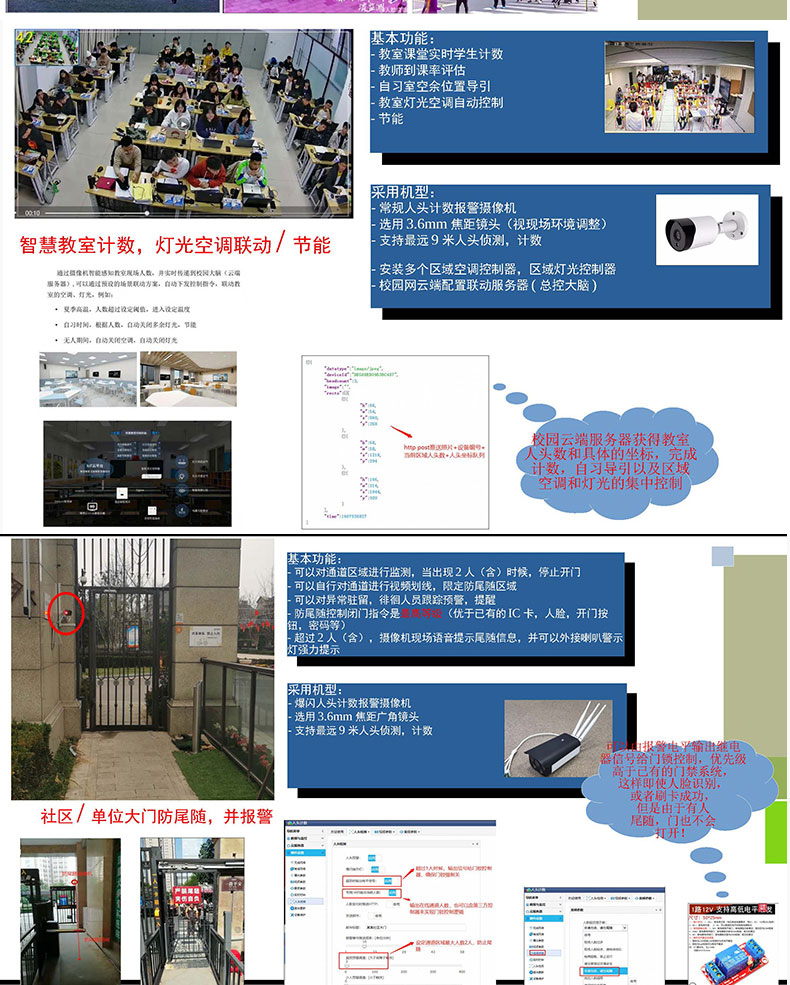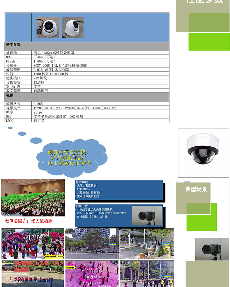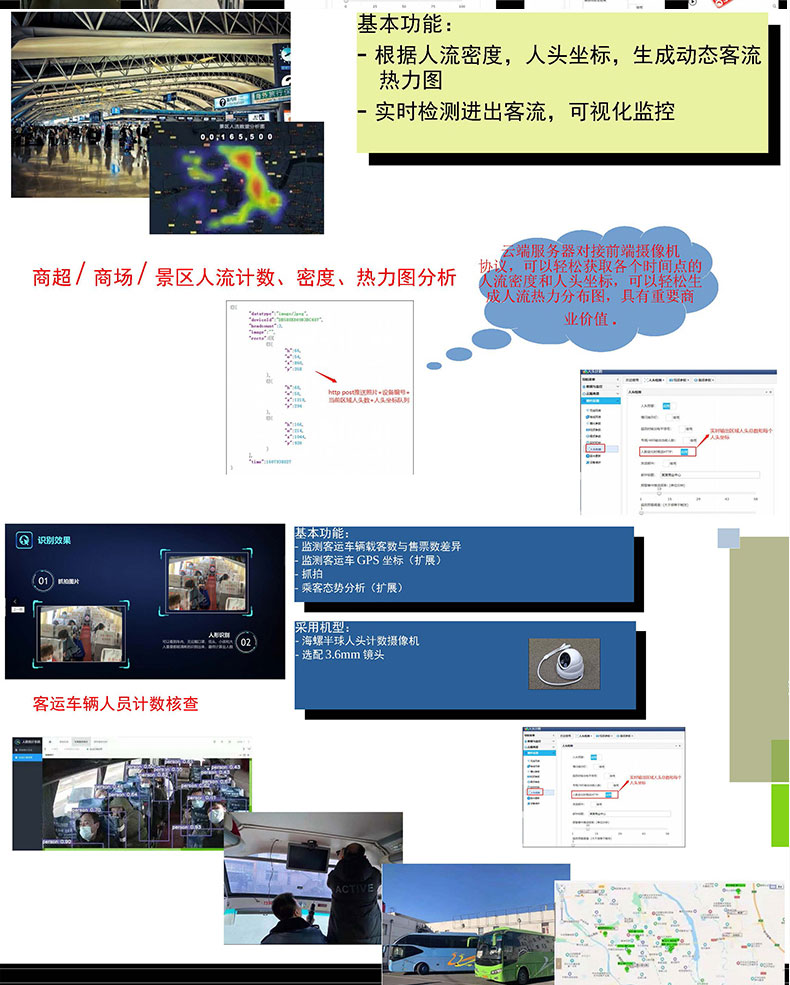 智能AI攝像機(jī)采用領(lǐng)先的視覺技術(shù),獲取目標(biāo)的深度信息,結(jié)合智能跟蹤算法分析行人的行為軌跡,對計(jì)數(shù)區(qū)域進(jìn)行分塊處理,計(jì)算各區(qū)塊邊界線上人員通行的方向及人數(shù),實(shí)現(xiàn)高精度的客流統(tǒng)計(jì)效果;廣泛應(yīng)用到商場超市景區(qū)客站臨時活動等場所用來智能監(jiān)控;客流人數(shù)統(tǒng)計(jì)及軌跡跟蹤。攝像機(jī)是把光學(xué)圖像信號轉(zhuǎn)變?yōu)殡娦盘枺员阌诖鎯蛘邆鬏數(shù)囊环N機(jī)器。當(dāng)我們拍攝一個物體時,此物體上反射的光被攝像機(jī)鏡頭收集,使其聚焦在攝像器件的受光面上,再通過攝像器件把光轉(zhuǎn)變?yōu)殡娔?,即得到了“視頻信號”,有的公交車上通過安裝攝像機(jī)來拍攝記錄上下車的行人,再通過車載設(shè)備統(tǒng)計(jì)實(shí)時經(jīng)過攝像機(jī)的客流量,因此攝像機(jī)是客流量統(tǒng)計(jì)系統(tǒng)中的重要一個部件。傳統(tǒng)的攝像機(jī)一般安裝在公交車車廂內(nèi)部的車頂,由于每個公交車的內(nèi)飾有區(qū)別,有的攝像機(jī)可以直接安裝在車廂內(nèi)壁,有的只能采用懸掛的方式進(jìn)行安裝,因此不同的車輛需要搭配不同的攝像機(jī)使用,攝像機(jī)的安裝適用范圍較窄,雖然有的攝像機(jī)內(nèi)部安裝減震結(jié)構(gòu)防止攝像機(jī)抖動,傳統(tǒng)的減震結(jié)構(gòu)一般采用彈簧或者橡膠墊減震,使用一段時間后彈簧容易變形或者橡膠墊易老化,導(dǎo)致減震效果變差。