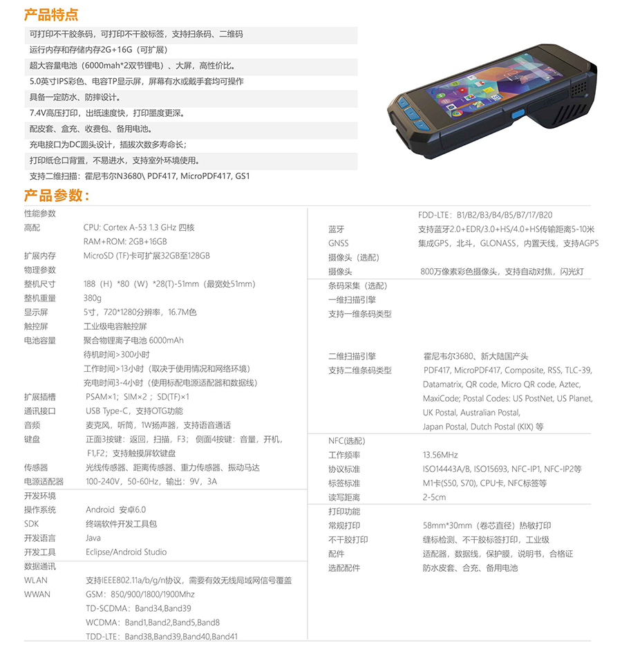 物聯(lián)工業(yè)智能便攜式手持一體機(jī)多功能PDA終端NFC不干膠標(biāo)簽4G藍(lán)牙WIFI條碼支持定制