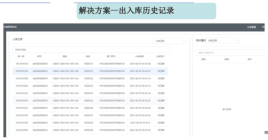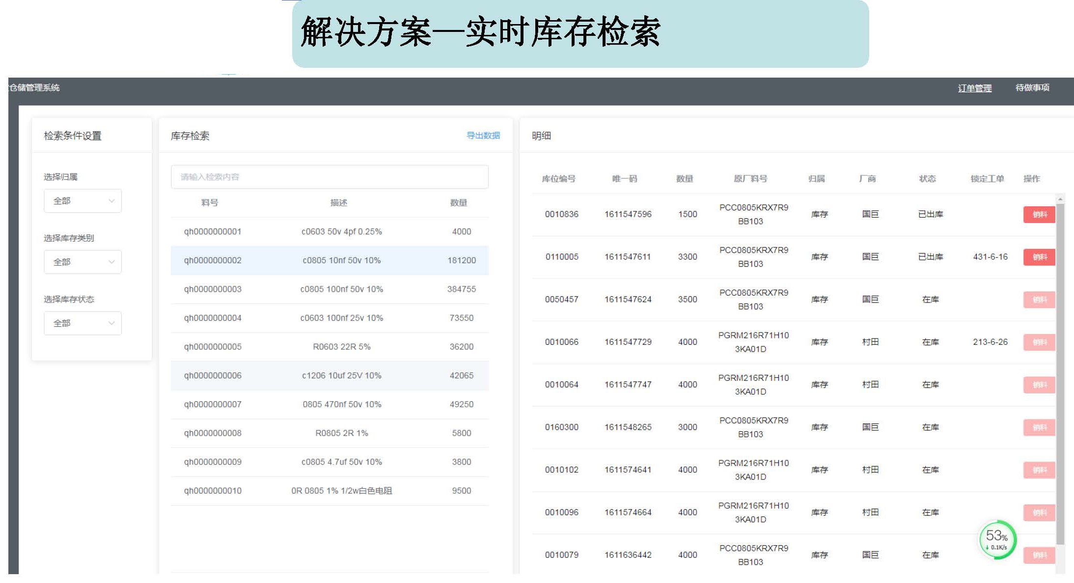 根據(jù)多年工廠管理經(jīng)驗(yàn),開發(fā)出智能倉(cāng)儲(chǔ)亮燈貨架及倉(cāng)儲(chǔ)管理系統(tǒng)軟件。可以提供全場(chǎng)景多種狀態(tài)物料的智能管控,包括客供料,自購(gòu)料,客自供料一體的來料管理,臨時(shí)增加訂單,臨時(shí)取消訂單和臨時(shí)修改訂單數(shù)量的生產(chǎn)計(jì)劃安排。可以對(duì)接ERP.MES系統(tǒng),并完善系統(tǒng)中存在的不足。
