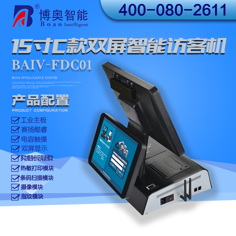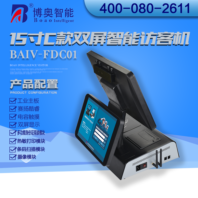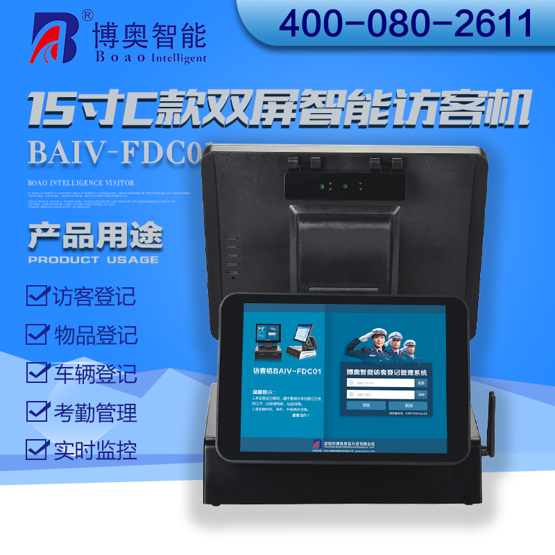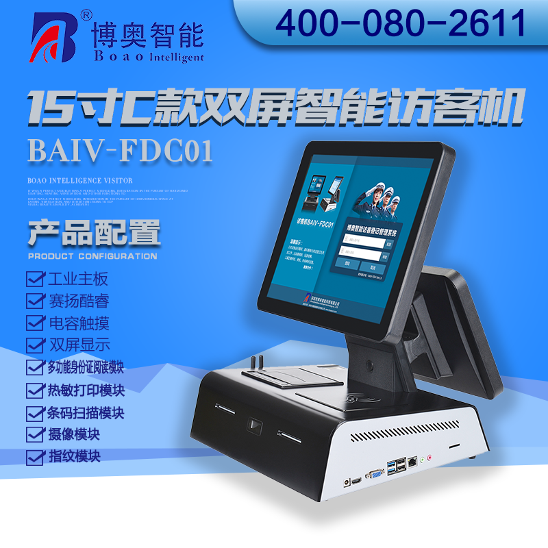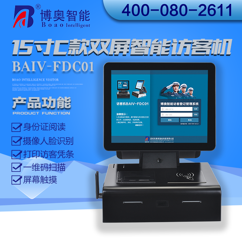 ? ? ? 15寸C款雙屏智能訪客機(jī)主要用在政府機(jī)關(guān)、關(guān)口、機(jī)場、軍隊(duì)、公安、法院、學(xué)校、事業(yè)單位、花園小區(qū)、高檔寫字樓、工廠等門衛(wèi)傳達(dá)室用來訪客登記管理;辦公大廳、營業(yè)大廳、醫(yī)院等場所做為辦公設(shè)備