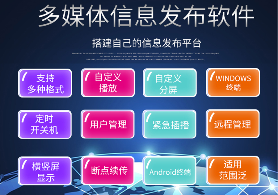 信息導(dǎo)引及發(fā)布系統(tǒng)是一個(gè)用于數(shù)字化媒體內(nèi)容發(fā)布與播放的專業(yè)系統(tǒng),該系統(tǒng)可以替代張貼海報(bào)、播放文件等舊的宣傳方式,將需要宣傳和發(fā)布的內(nèi)容以數(shù)字化的方式編輯制作,然后通過(guò)網(wǎng)絡(luò)化的方式傳輸?shù)街付ǖ慕K端設(shè)備上進(jìn)行播放,并以信息化方式進(jìn)行集中管理,以達(dá)到信息內(nèi)容的指定發(fā)布、實(shí)時(shí)更新和集中管理目的。
