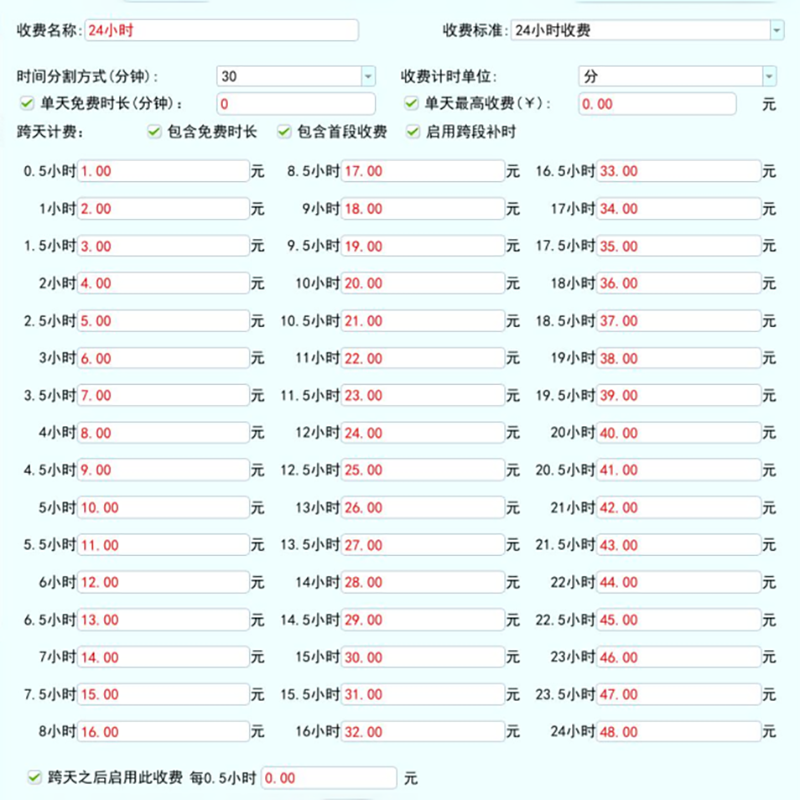 3、豐富的收費標準任意配置(白天黑夜、工作日非工作日、高峰非高峰、24小時、分段收費等)