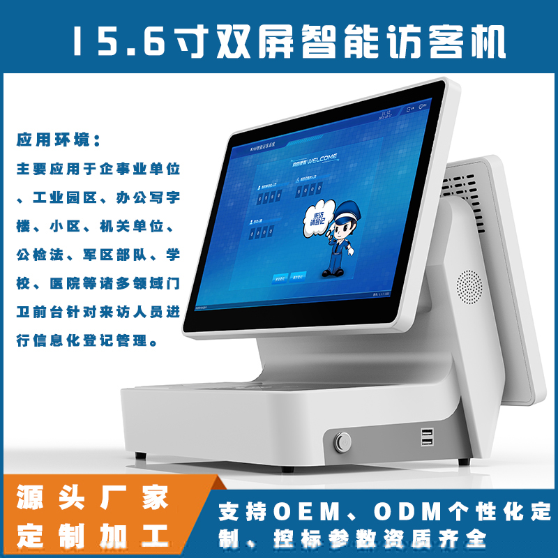 總的來(lái)說(shuō),15.6寸雙屏智能訪客機(jī)是一種高效、安全且用戶友好的訪客管理設(shè)備,適用于各種場(chǎng)所和場(chǎng)景的訪客登記和管理需求。