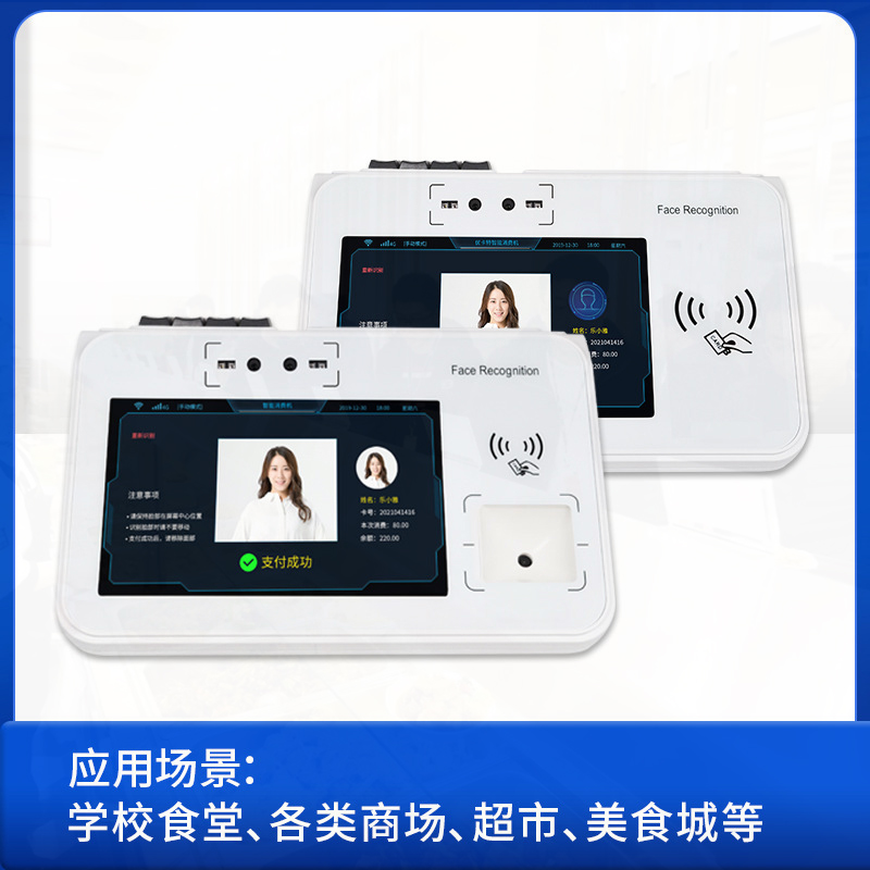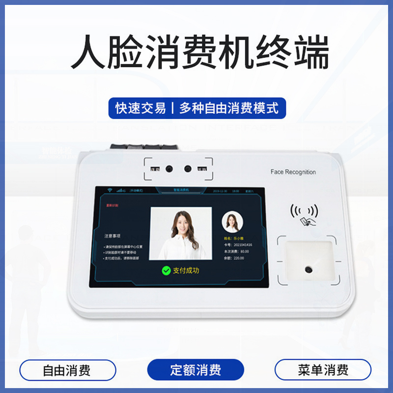 近些年,我司跟緊時代發(fā)展,充分了解市場需求后,決定在原有消費機基礎(chǔ)上研發(fā)改進(jìn)新一代消費機,經(jīng)過技術(shù)工程師的日夜攻克以及充分的實驗驗證,全新的非接觸式IC卡的消費機擴展人臉識別消費機正式面世。人臉智能+食堂消費系統(tǒng)有效的解決了傳統(tǒng)的飯票或者飯卡丟失、補辦的繁瑣步驟,刷臉支付更為智能、廣泛、方便。而且人臉智能+食堂消費更能凸顯作為機關(guān)單位與時代接軌的先進(jìn)性、高效性人臉識別消費管理系統(tǒng)是當(dāng)前廣泛使用的收費、食堂售飯系統(tǒng)。它采用了雙目結(jié)構(gòu)光,雙目200萬寬動態(tài)模組、雙目活體檢測人臉系統(tǒng),并結(jié)合現(xiàn)代管理方法設(shè)計而成。具有免接觸,無損耗,技術(shù)先進(jìn),系統(tǒng)擴張性好,無需維護(hù),投資一步到位等優(yōu)點,避免了因接觸IC卡的讀寫、油污、芯片裸露等缺陷造成的各種故障。是取代磁卡,無接觸式人臉的收費機,是廣大學(xué)校,企事業(yè)單位提高管理水平,實現(xiàn)電腦化的優(yōu)先選擇。