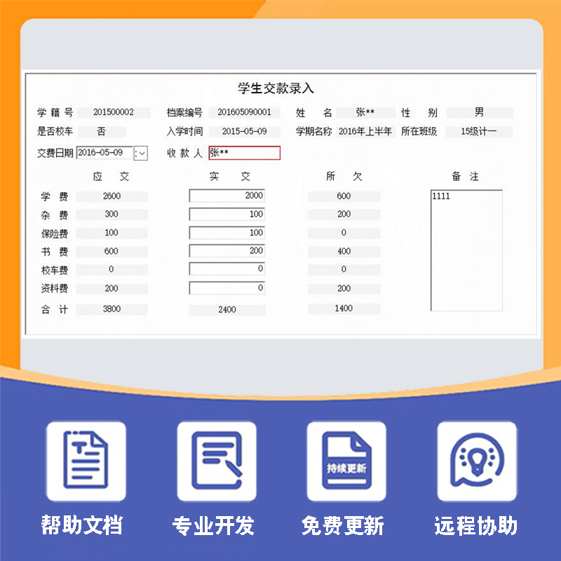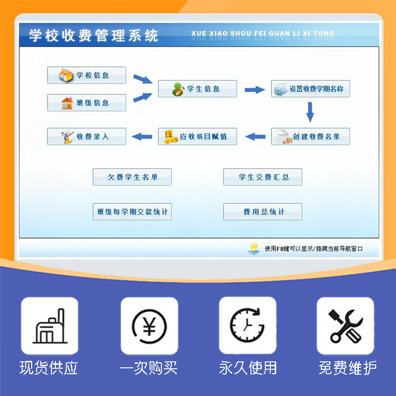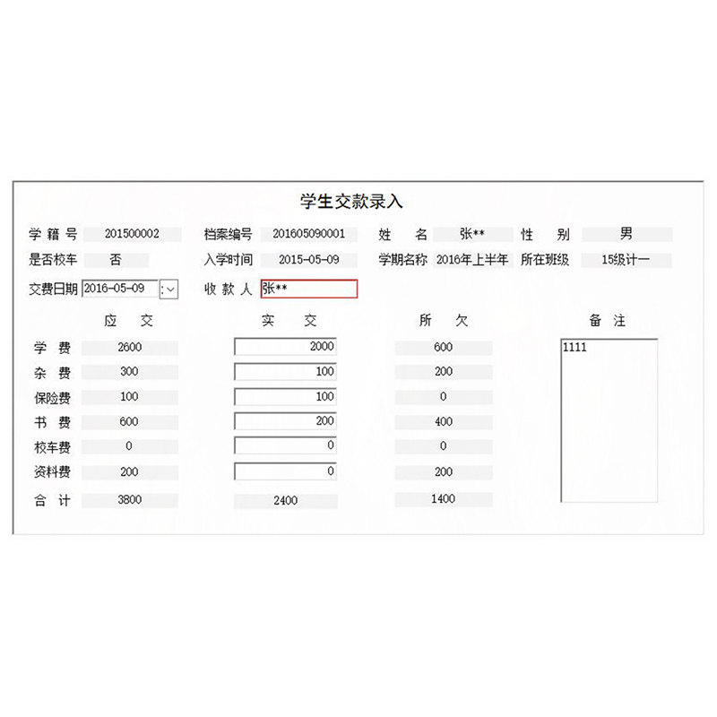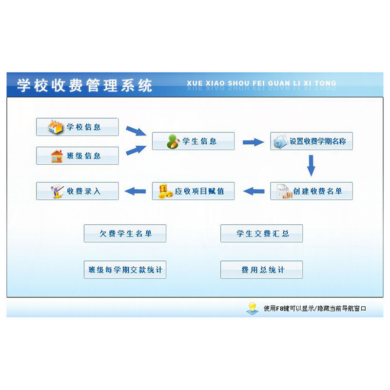 協(xié)助學(xué)校收取學(xué)生學(xué)費、書費、資料費、保險費、雜費和校車費進行全面管理的系統(tǒng)。