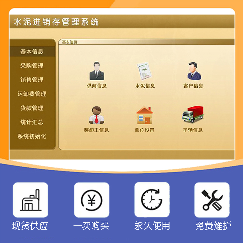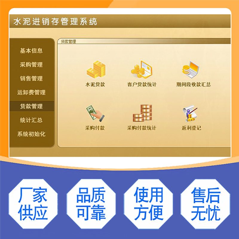 水泥進(jìn)銷存管理系統(tǒng)現(xiàn)貨供應(yīng)免費試用一次購買永久使用按需定制開發(fā)各行業(yè)應(yīng)用軟件