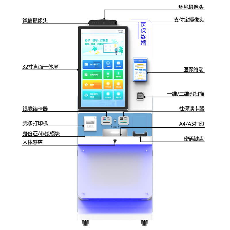 32寸直面醫(yī)保終端 醫(yī)院全功能自助服務設備 支持刷臉支付/醫(yī)保結算
